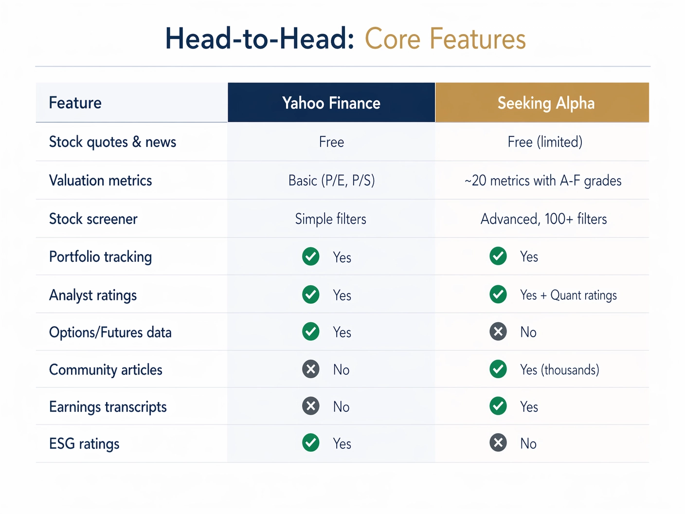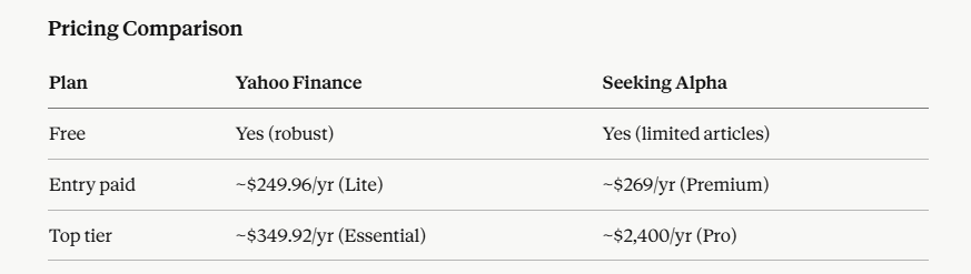 Yahoo Finance vs Seeking Alpha – Yahoo Finance offers free real-time data and news while Seeking Alpha provides deep research and Quant Ratings. Compare both now.